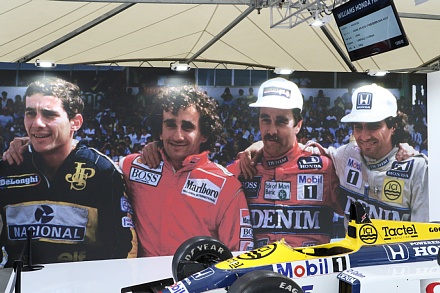 反対側には有名な4人のワールドチャンピオンのショットが。 今思えば皆ウィリアムズ経験者ですね。 ん、でもセナだけウィリアムズでタイトルを取っていないんですねぇ |