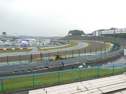 結局1.5時間のセッションのうち約半分が経過したところで雨が弱まり、改めてFP2開始。‘み’もEスタンドに移動して撮影&観戦を開始しました。