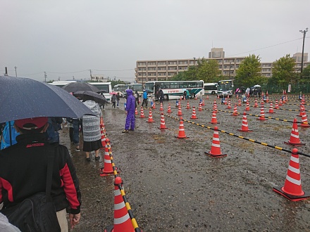 およそいつもの場所に陣取りましたが、雨が酷くなっているんですけど(T_T) 写真では分からないかも知れませんが、風も強かったですね。ぶっちゃけこの頃は雨風が強く台風並みでした。動画だと様子が分かりますかね。あ、ちなみにこの動画の最後にちらっと写っている靴、ここで紹介したモンベルのラップラウンドブーツですが、この雨風の中で全く内部が濡れなかったのにびっくりしました。購入時に店員さんが「足首より上から水が入らなければ濡れない」と豪語していたんですが、看板に偽りなしでしたね。