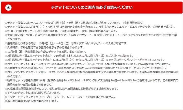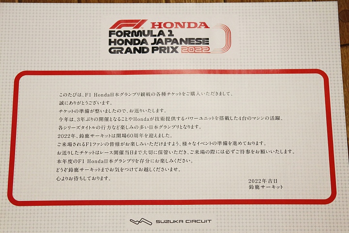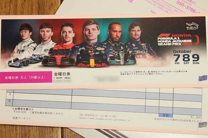 年々値上がりしている金曜日券。今年は7,400円也。ローチケの店頭印刷チケットは味気ないなぁと思い、今回はサーキットの公式サイトから購入。ドライバーがデザインされていて大正解。