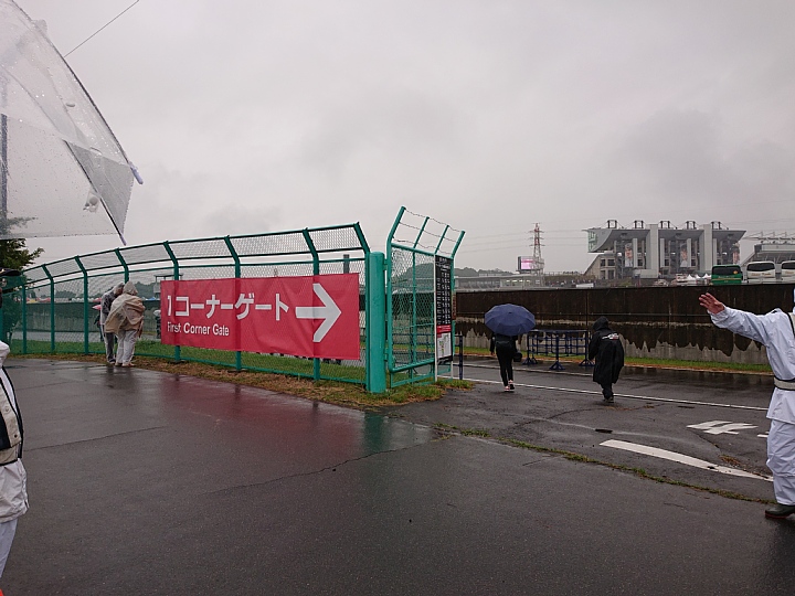 1コーナーゲート。ートの手前にも雨を凌げるテントが用意されていました。