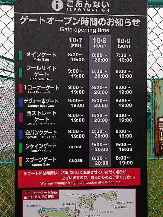 ゲートオープン時刻の案内。今年は少し遅めに動いているので、ちょうどゲートオープン間際に到着しています。