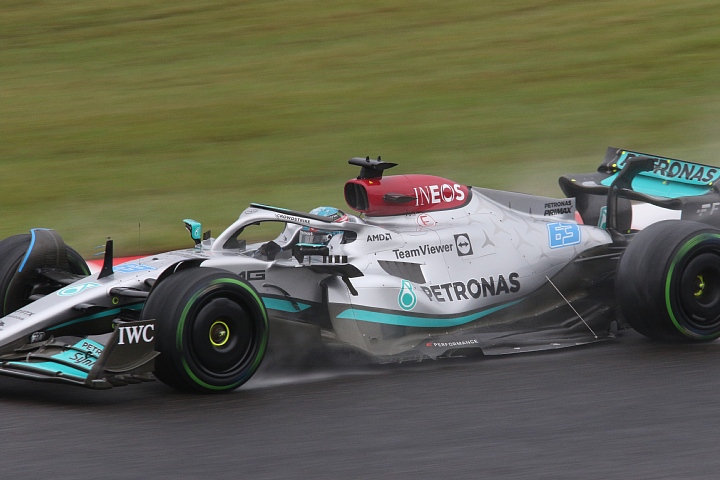 このセッションはメルセデスのワンツー。トップタイムはジョージ・.ラッセルの1:41.935、2番手がルイス・.ハミルトンの1:42.170。角田裕毅は1:45.257の14位ですが、FP2ですからね・・・