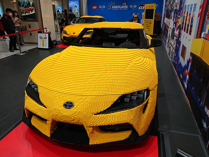 近鉄白子駅までは当然夕方の渋滞に巻き込まれるので40〜45分程度かかりましたが、近鉄特急は乗車寸前まで予約や変更が出来るので、19:11発の特急を確保し、19:51には名古屋駅に到着できました。そういえば名古屋駅にはレゴのスープラが展示されていました。トヨタも勝ってからF1撤退して欲しかったなぁ